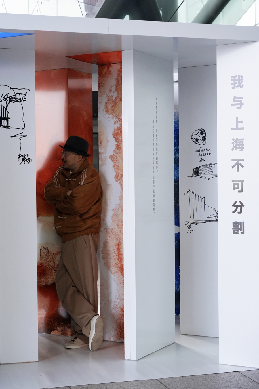 这是一件3米见方的彩色钢板装置,本身便是一份关于上海的城市宣言。装置之上,俞挺写道:“城市不是静态,而是不断展开的事件。城市的建筑承载并放大了这些事件发展的时刻。”与之相邻,建筑评论家范文兵的推荐语同样启迪人心——从“兼容并蓄的胸怀”到“勇于奋进的精神”,再到“摩登烟火的日常”——三组十六字,凝练出一座城市的品格注脚。