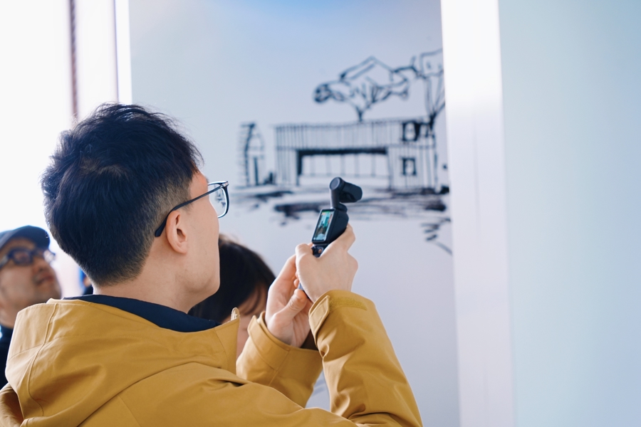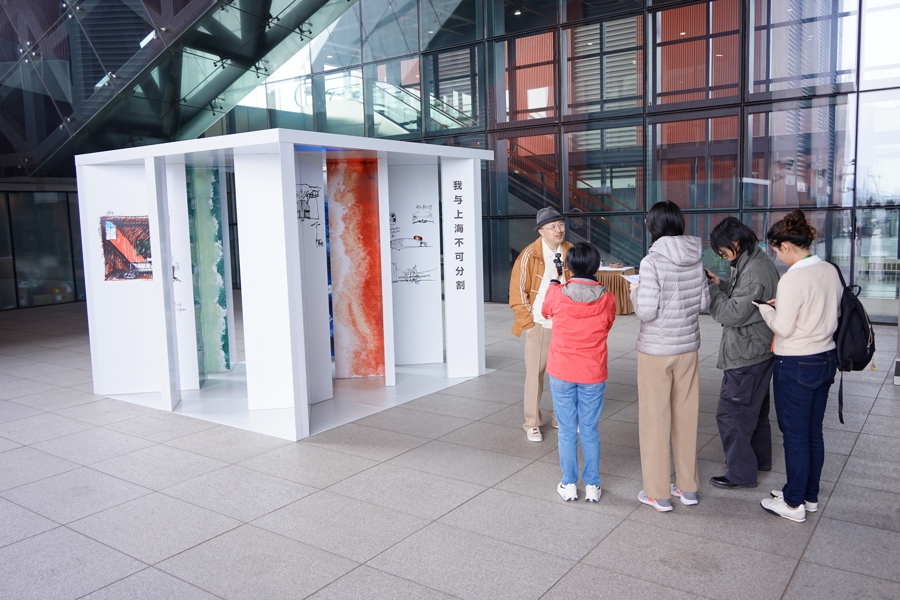 而装置真正的叙事纵深,藏在展签上的一枚二维码中。扫码之后,观众将读到俞挺写给上海的长篇独白:这座城市如何从一座巨大的迷宫,随着每个人的成长而日渐清晰。装置之上,呈现了俞挺的系列建筑实践——徐家汇书院、李斌之家、湖畔小屋、独白美术馆。它们如同散落的坐标,标记着建筑师与城市对话的轨迹。这些作品共同构成了装置的精神注脚:建筑,从来不只是砖石的堆叠,而是将每一个人对城市的理解与热爱,汇聚为可触摸的共同记忆。